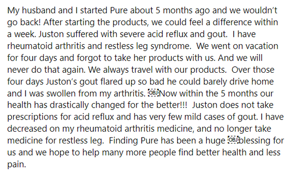 *These statements have not been evaluated by the Food and Drug Administration. Products offered by PURE are not intended to diagnose, cure, treat, or prevent any disease and are not intended to replace any medical treatment.