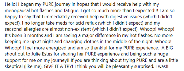 more details on PURE products or check out the product tab at www.PURELifeChangers.com for hours and hours of education on our products.