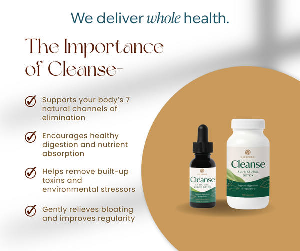 Cleanse is your go-to when customers say, “I feel sluggish” or “my digestion is off.” It’s a natural, non-fasting detox that supports healthy digestion and relieves occasional constipation by working across all seven channels of elimination—not just the colon.