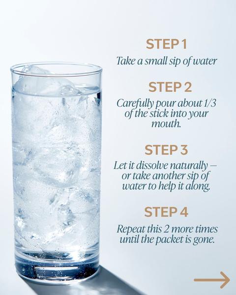 water, up to three times daily. A consistent habit builds credibility and trust in the product so make sure you incorporate it into your daily routine, not just when you are feeling sick/off! Quick Tip: First thing in the morning, one dose; midday (especially if you’re on the go), another; optionally evening if your schedule is demanding.