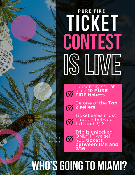 CONGRATS to all who sold tickets last week and are now in the running for this ALL EXPENSES PAID trip to Miami for TWO! Melissa Urban x 2 Dana White Toni Walker x 2 Jenny Wetzel