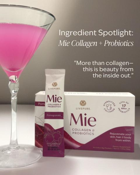 PRODUCT SPOTLIGHT : Mie Collagen/ ProbioticYour must-have refreshing beauty drink for glowing skin from the inside out. Look and feel more beautiful with professional-grade collagen peptides and clinically tested probiotics. Enhanced with Hyaluronic Acid, Vitamin C, Biotin, and Copper for the