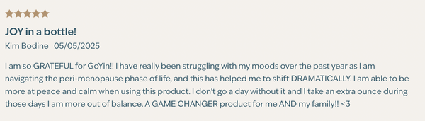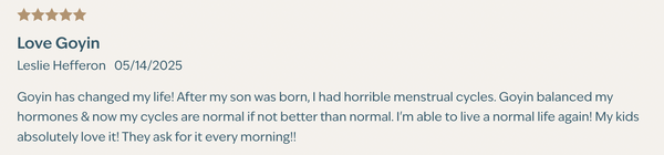 Goyin, I struggled with PMDD and the emotional and physical toll it took on me every month. Since incorporating Goyin into my daily routine, my symptoms have dramatically improved—and in fact, they’ve virtually disappeared. I feel more balanced, more centered, and simply more like myself. This isn’t just another supplement; it’s become a foundational part of my wellness routine. I’m sleeping better, managing stress more calmly, and feel a steady sense of peace that I hadn’t experienced in a long