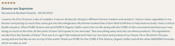 of vegetables, I suggest trying PURE Greens. I've found it gives a sense of bodily calm, especially when taken in the morning with Mila and Energy. It helps me start my day without any crashes or brain fog." -Adebola "I never imagined I could enjoy taking a greens supplement—I expected it to be a bitter but necessary supplement, especially since