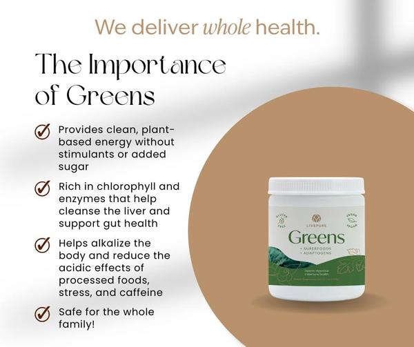 I don’t eat enough vegetables daily. But LivePure Greens completely changed my perspective. While it’s not candy-sweet, when I mix it with my other LivePure favorites, it's surprisingly easy to drink. I take it daily, and it gives me peace of mind knowing I'm consistently nourishing my body with essential nutrients. Highly recommend giving it a try!" -Anitra "I highly recommend the Greens. They provide 100% of our daily requirements for fruits and vegetables. It must be why I never feel hungry after I have taken them." -Vickie 🎥 LEARN MORE: