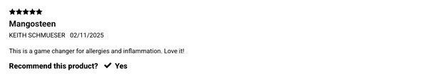 "My 12yo son loves this superfruit! He has seen tremendous relief from his allergies since he started taking this when he was really struggling one day. He has decided to add this into his daily routine & grabs this bottle for a 1oz shot both day & night. Once he felt the difference in his allergy relief, I've noticed he rarely misses a day taking his Mangosteen!"